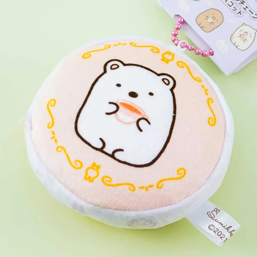 - A super cute round plushie charm illustrated with Shirokuma from the Sumikko Gurashi having tea