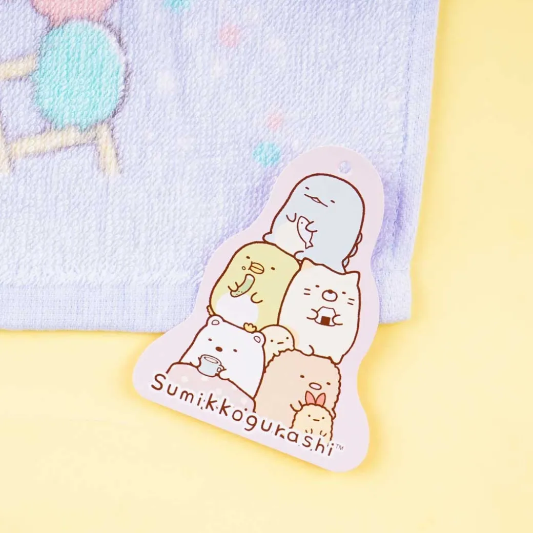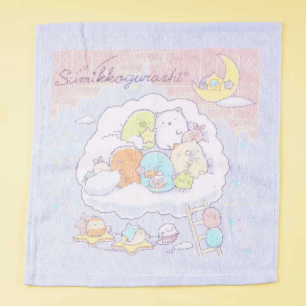 - A kawaii cotton wash towel illustrated with the Sumikko Gurashi sleeping on a cloud