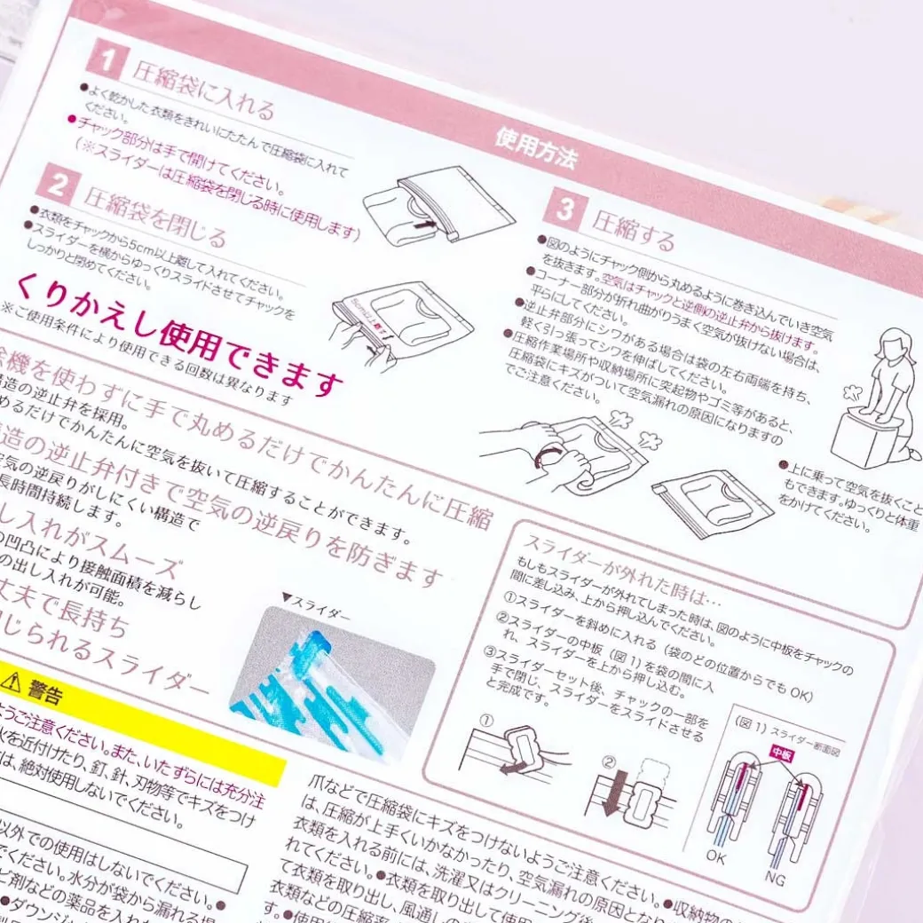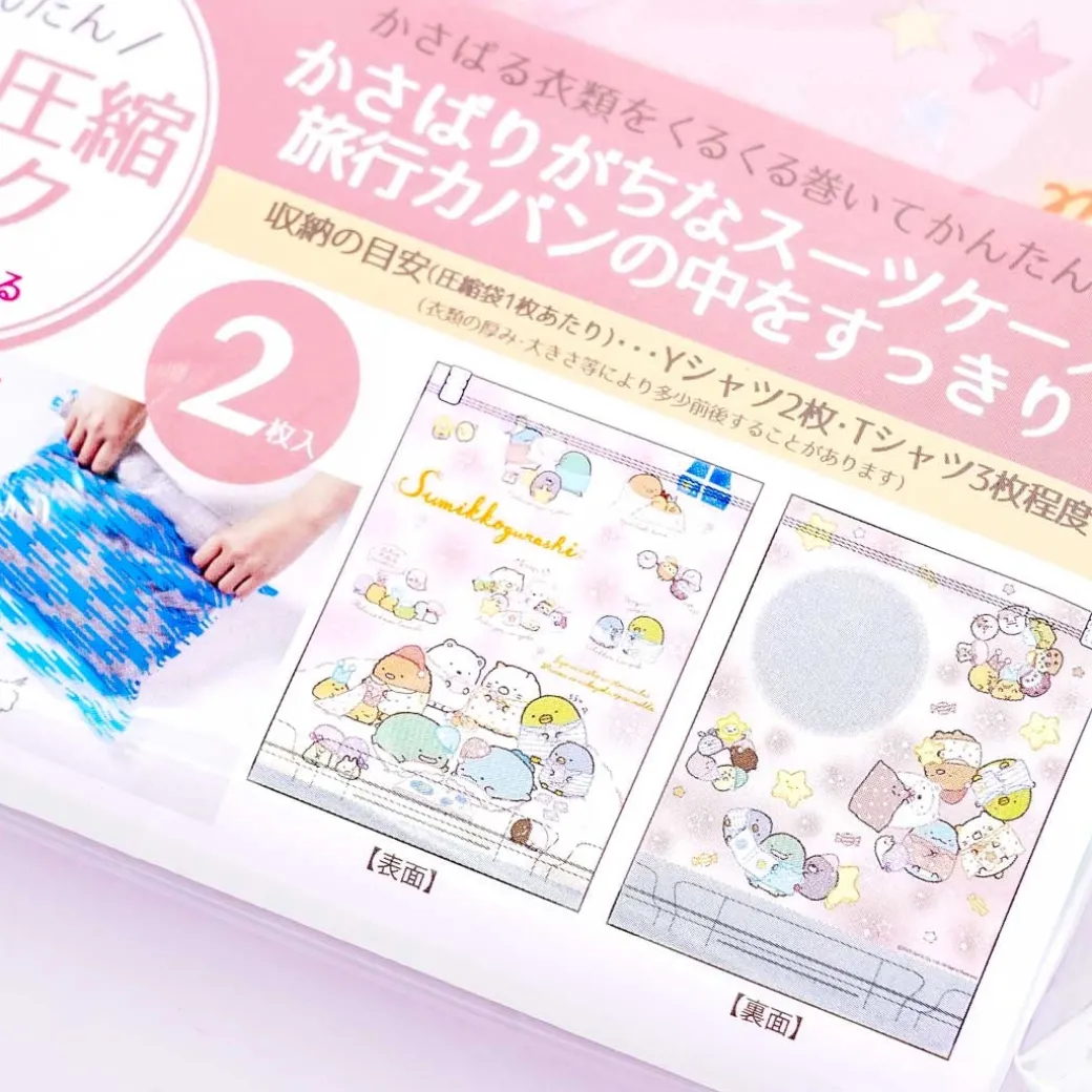 - A kawaii set of compression bags illustrated with the Sumikko Gurashi getting ready to sleep