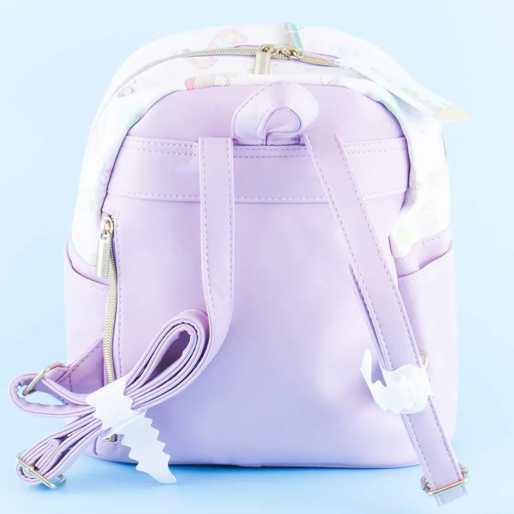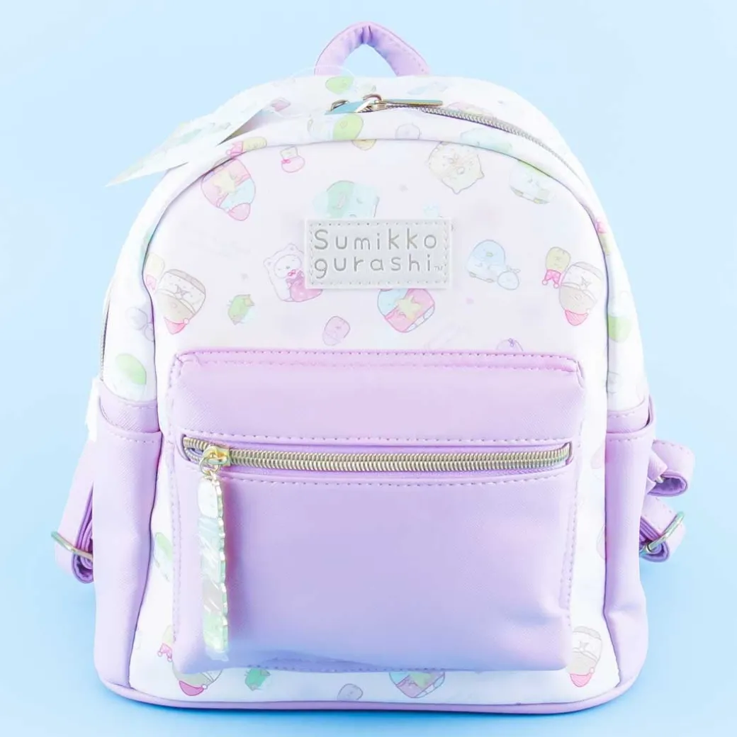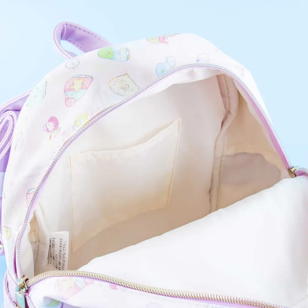 - A super kawaii purple backpack covered in prints of the Sumikko Gurashi gang wearing pajamas