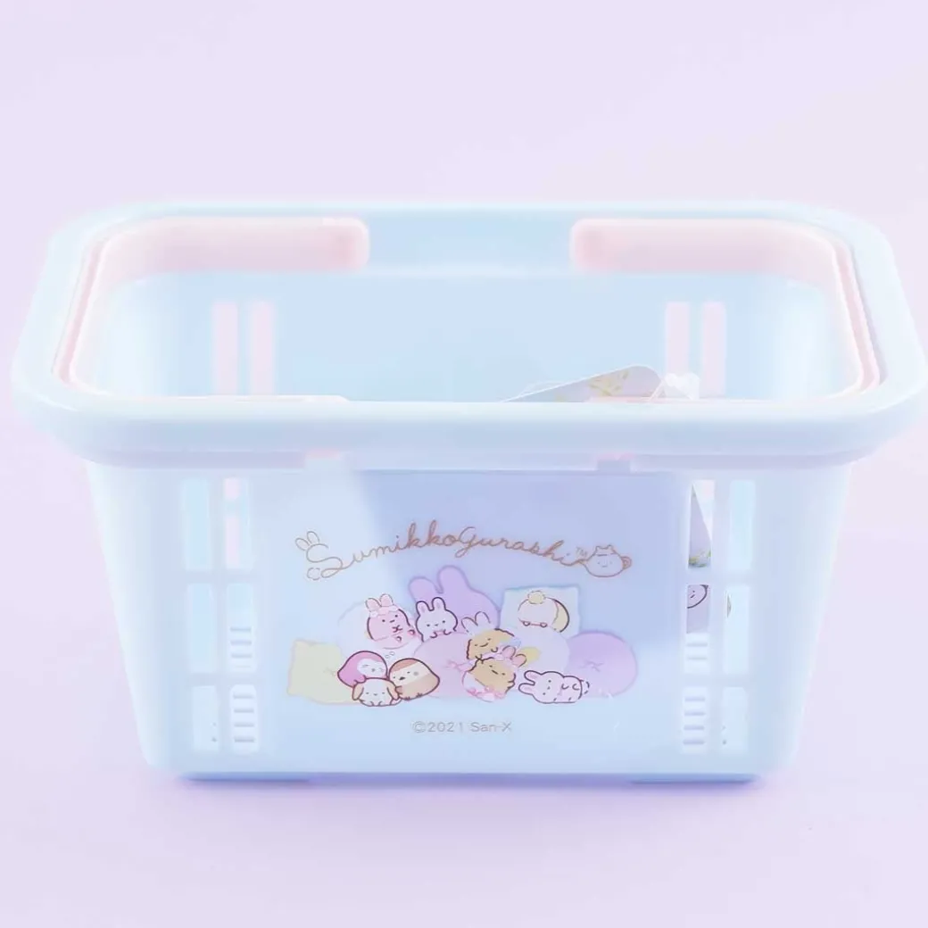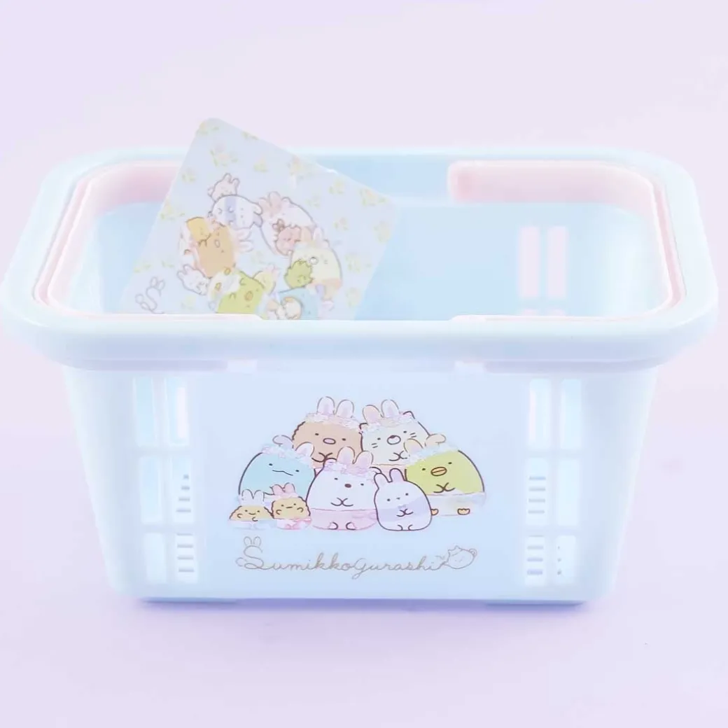 - A small-sized shopping basket with illustrations of Sumikko Gurashi characters in bunny costumes with spring flowers