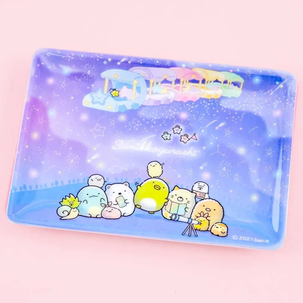 - A kawaii accessory tray illustrated with the Sumikko Gurashi looking at the stars