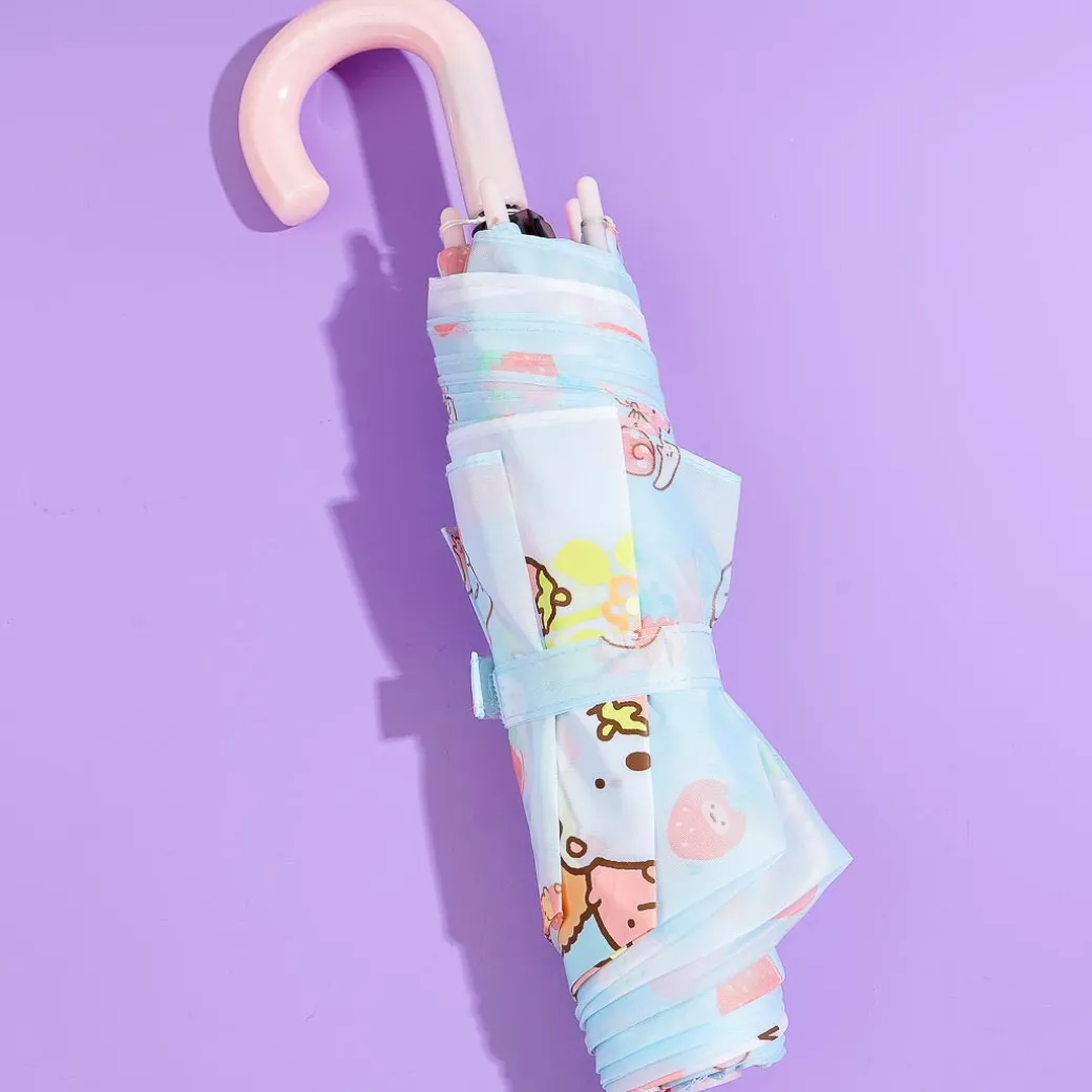 Stay cute and kawaii in whatever weather you’re in by bringing along this kawaii umbrella. This cute folding umbrella showcases prints of the Sumikko Gurashi gang and strawberries! It has a safety potter’s wheel design and a windproof black bone structure.