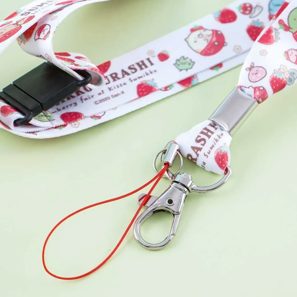 - A super cute lanyard covered in prints of the Sumikko Gurashi in a strawberry fair