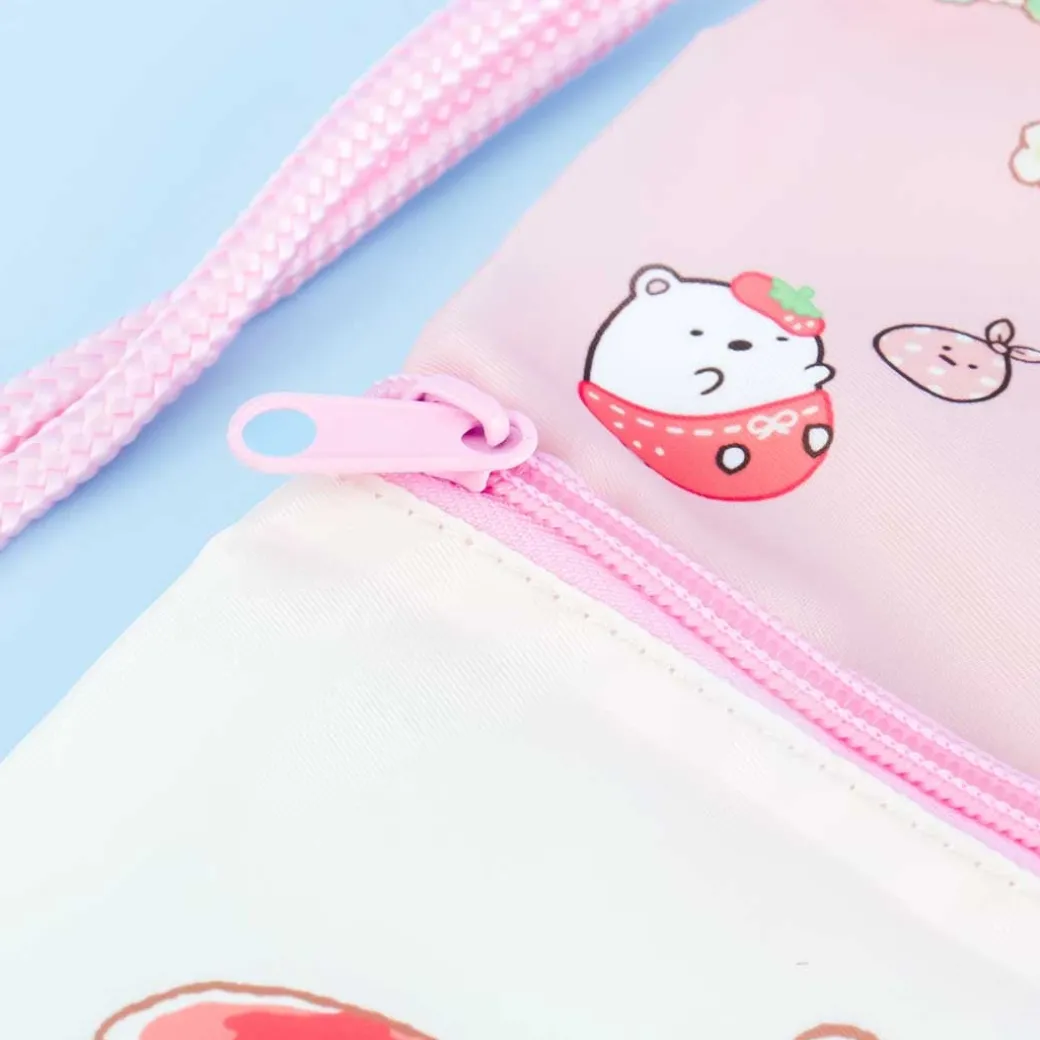 - A kawaii multi-strap bag featuring Sumikko Gurashi characters with strawberries