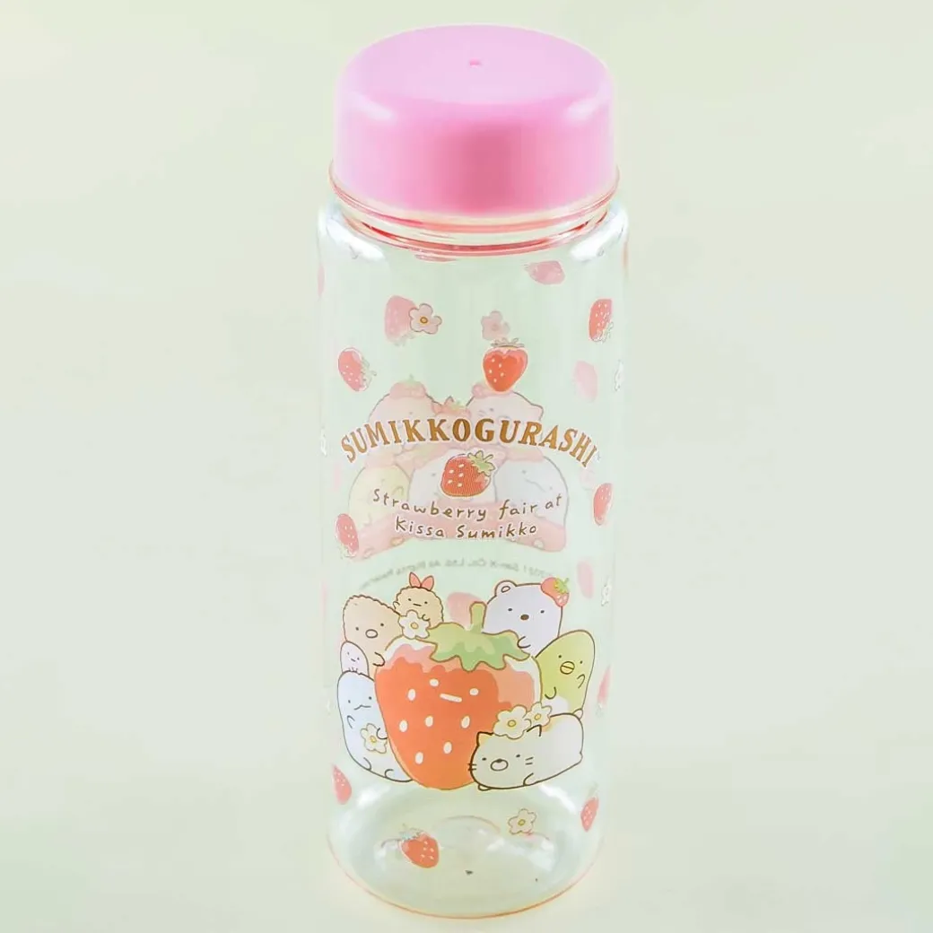 - A kawaii drinking bottle featuring the Sumikko Gurashi gang and a large strawberry
