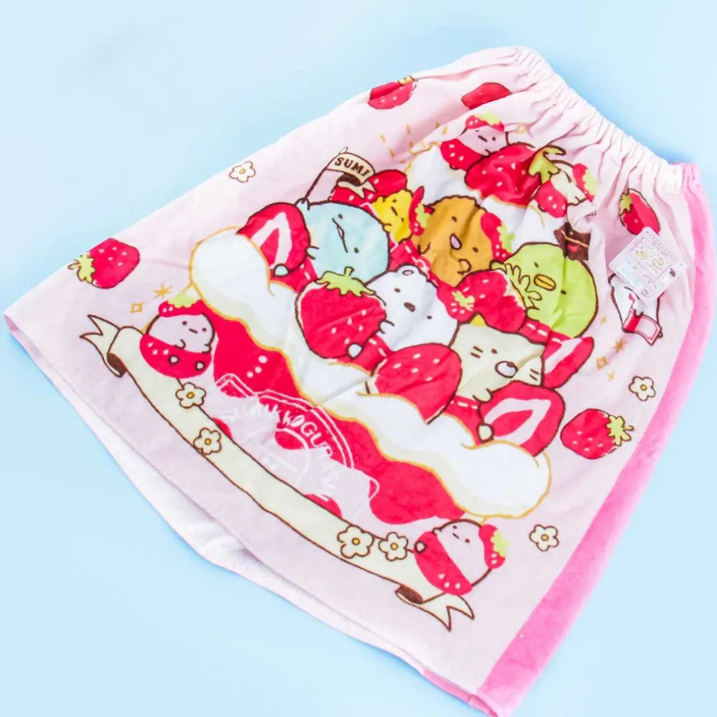 - A super cute towel covered in prints of the Sumikko Gurashi gang with strawberries