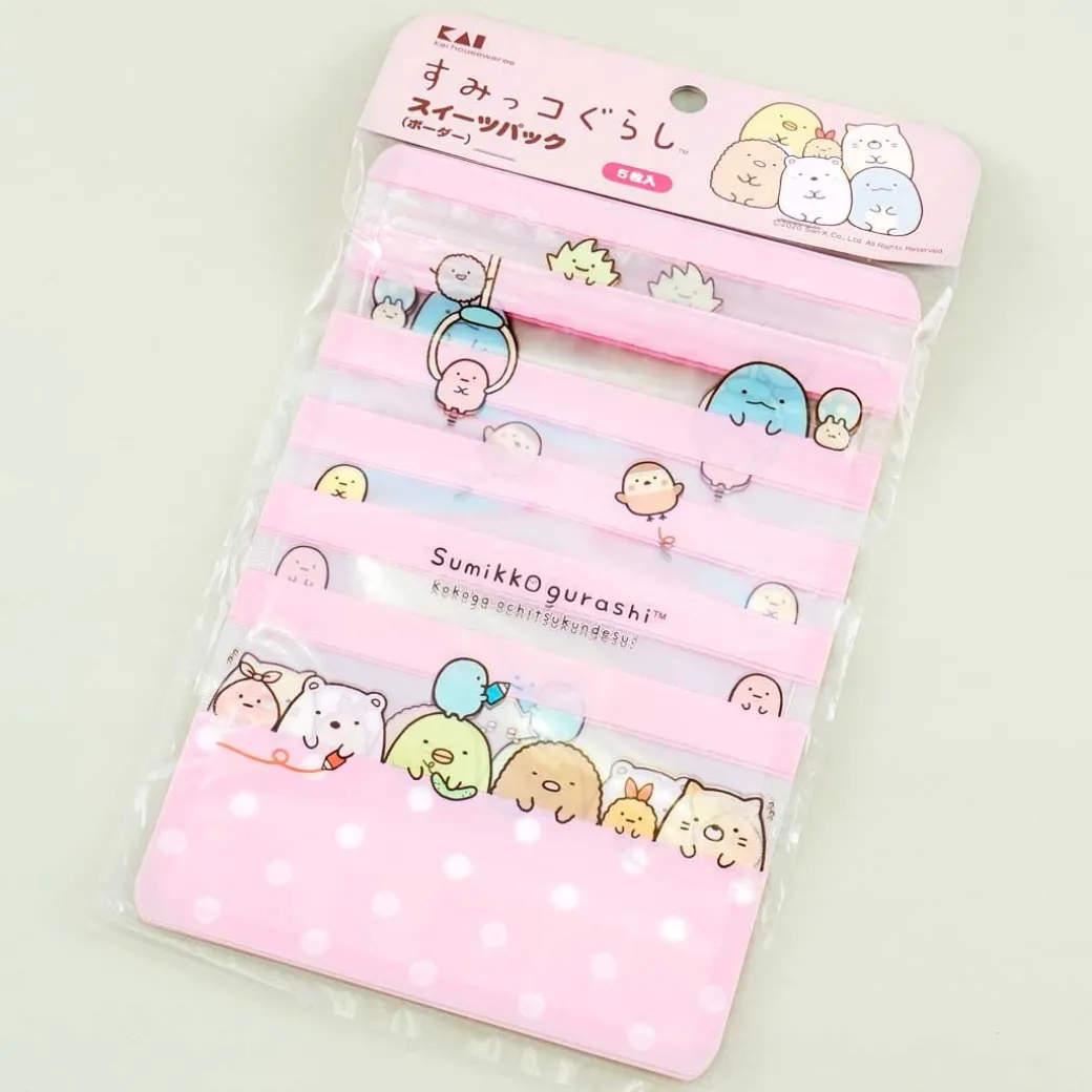 - A super kawaii set of striped resealable bags illustrated with the Sumikko Gurashi hanging out