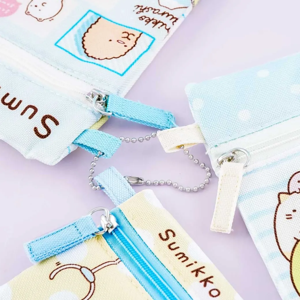 - A set of flat pouches featuring Sumikko Gurashi characters