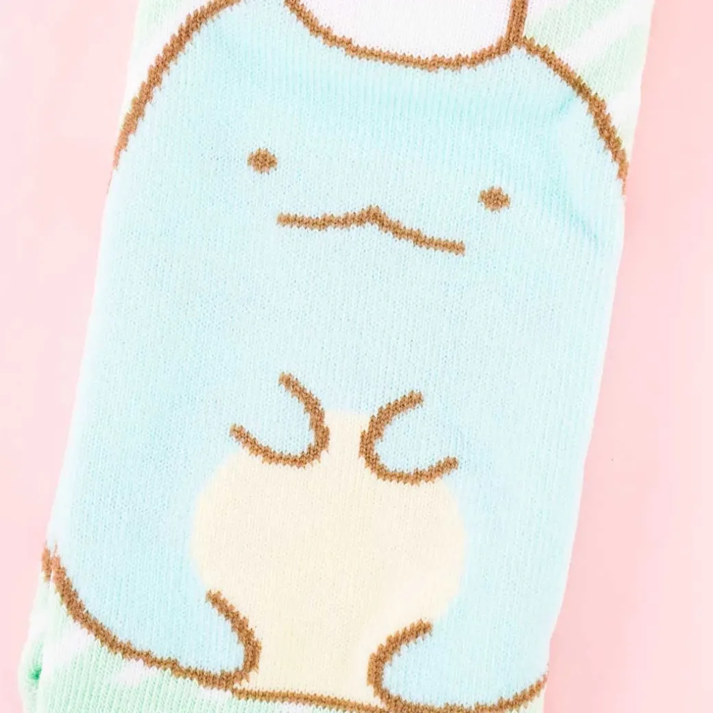 - A pair of kawaii Sumikko Gurashi striped socks with prints of Tokage as a chef