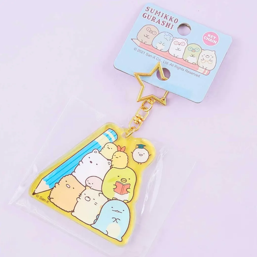 - A kawaii acryic charm illustrated with the Sumikko Gurashi studying