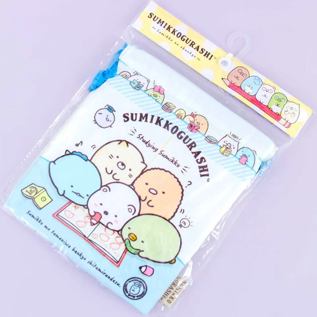 - A drawstring bag featuring Sumikko Gurashi characters studying