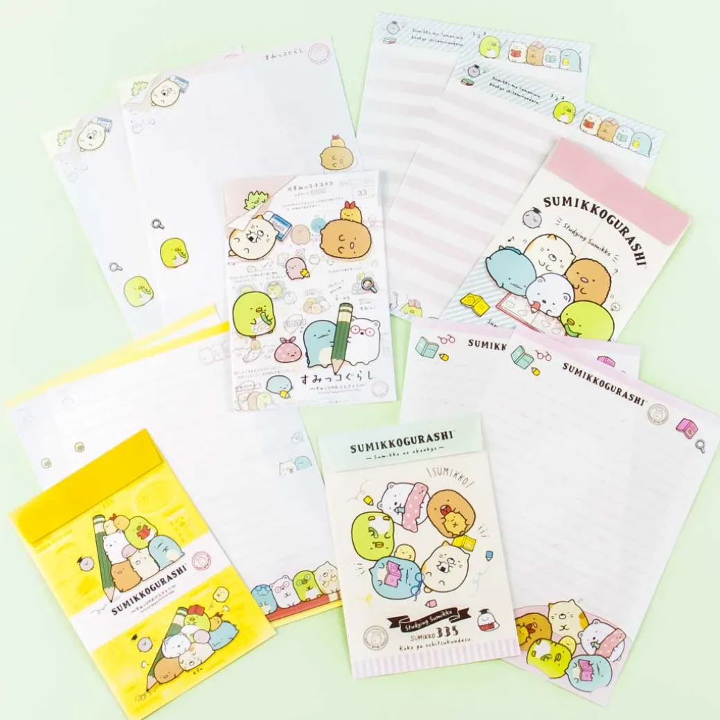 - A kawaii letter set featuring Sumikko Gurashi characters studying