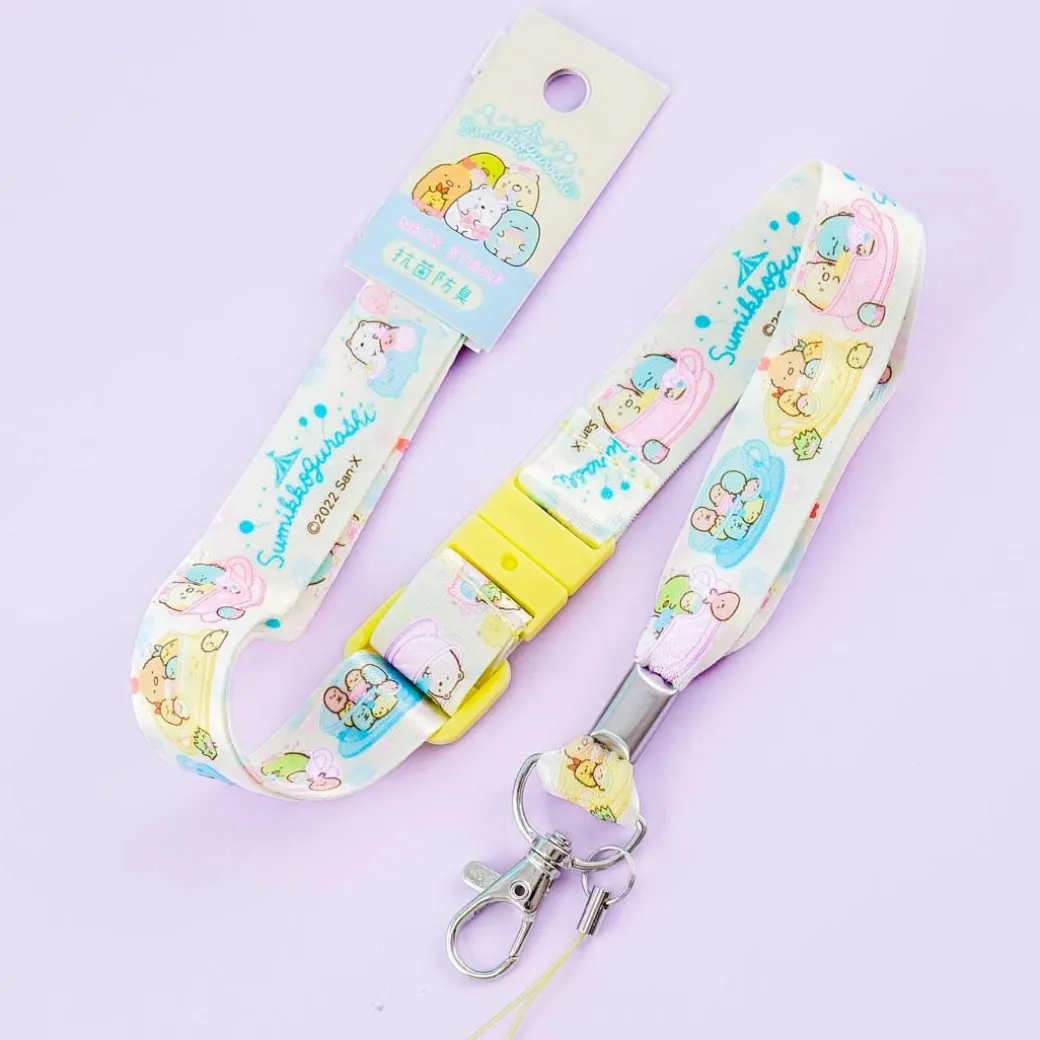 - A super kawaii lanyard featuring prints of the Sumikko Gurashi on the teacup ride at Tapioca Park