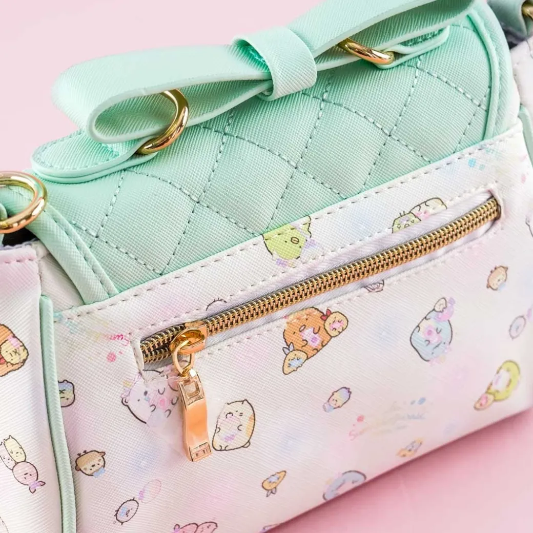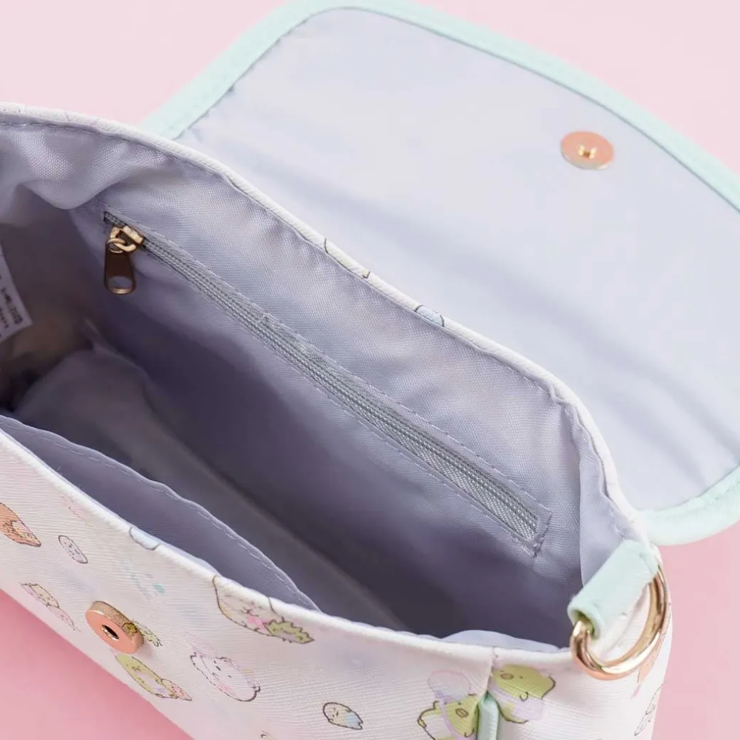 - A kawaii sling bag with a mint-colored quilted flap and prints of the Sumikko Gurashi gang at Tapioca Park