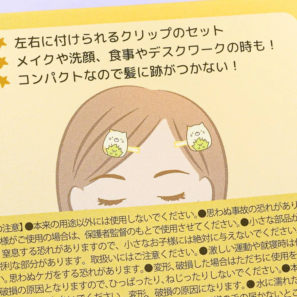 Use this kawaii set of hair clips to make your hairstyle extra cuter! It has kawaii charms featuring Neko and Zassou from Sumikko Gurashi. The charms has a velvety finish that’s nice to the touch.