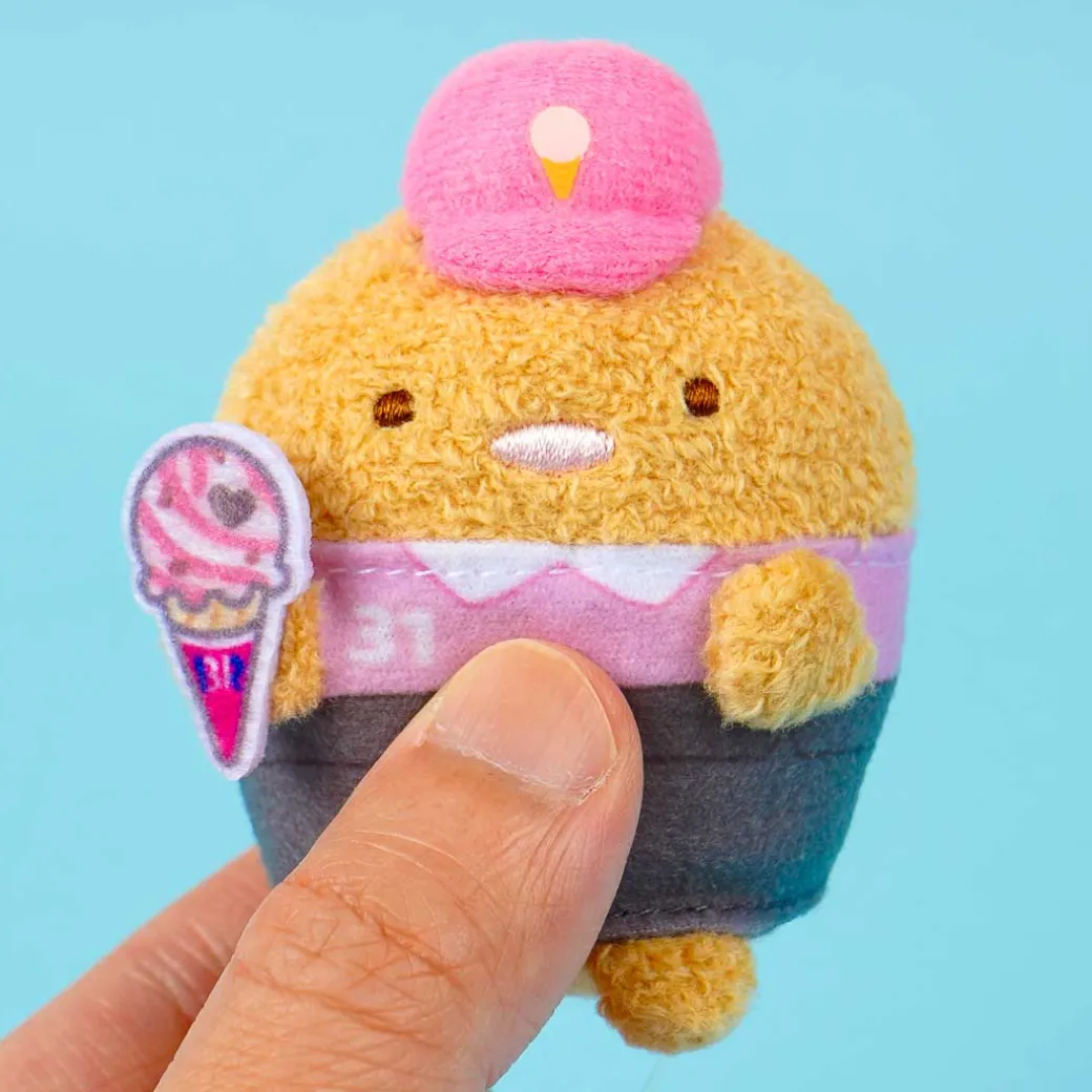 This kawaii mini Tonkatsu plushie wears a cute ice cream vendor uniform. It comes from the Sumikko Gurashi 31 Ice Cream series, a collaboration between the cute and shy San-X characters and Baskin Robbins!