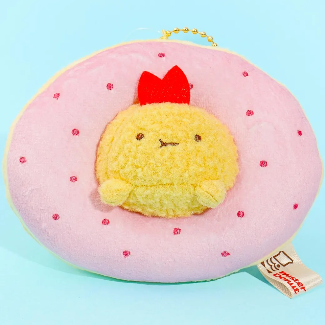 Take Ebifurai no Shippo to your overseas travels by attaching this kawaii charm to your backpack! It features Ebifurai riding a giant Strawberry Ring donut — one of Mister Donut Japan’s popular flavors.