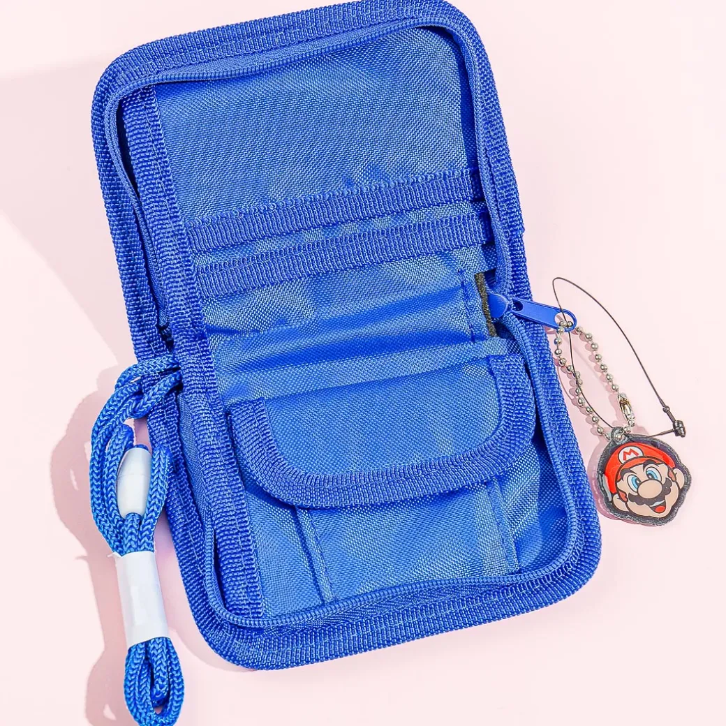 Store your bus and train passes, IDs, and other important small items inside this navy blue bi-fold wallet! The front side is decorated with a cute illustration of Mario and other popular game characters from the Super Mario series, and also comes with a Mario face charm. You can also carry it hands-free as it comes with an adjustable neck strap!