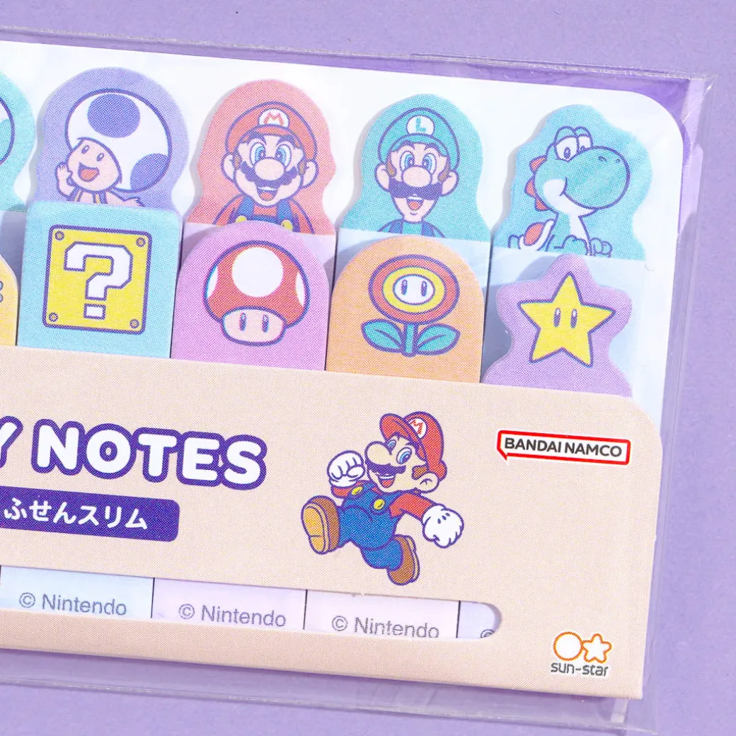 Have fun leaving notes all over your desk with the help of this super cute set of slim sticky notes! These die-cut sticky notes showcase colorful Super Mario characters.
