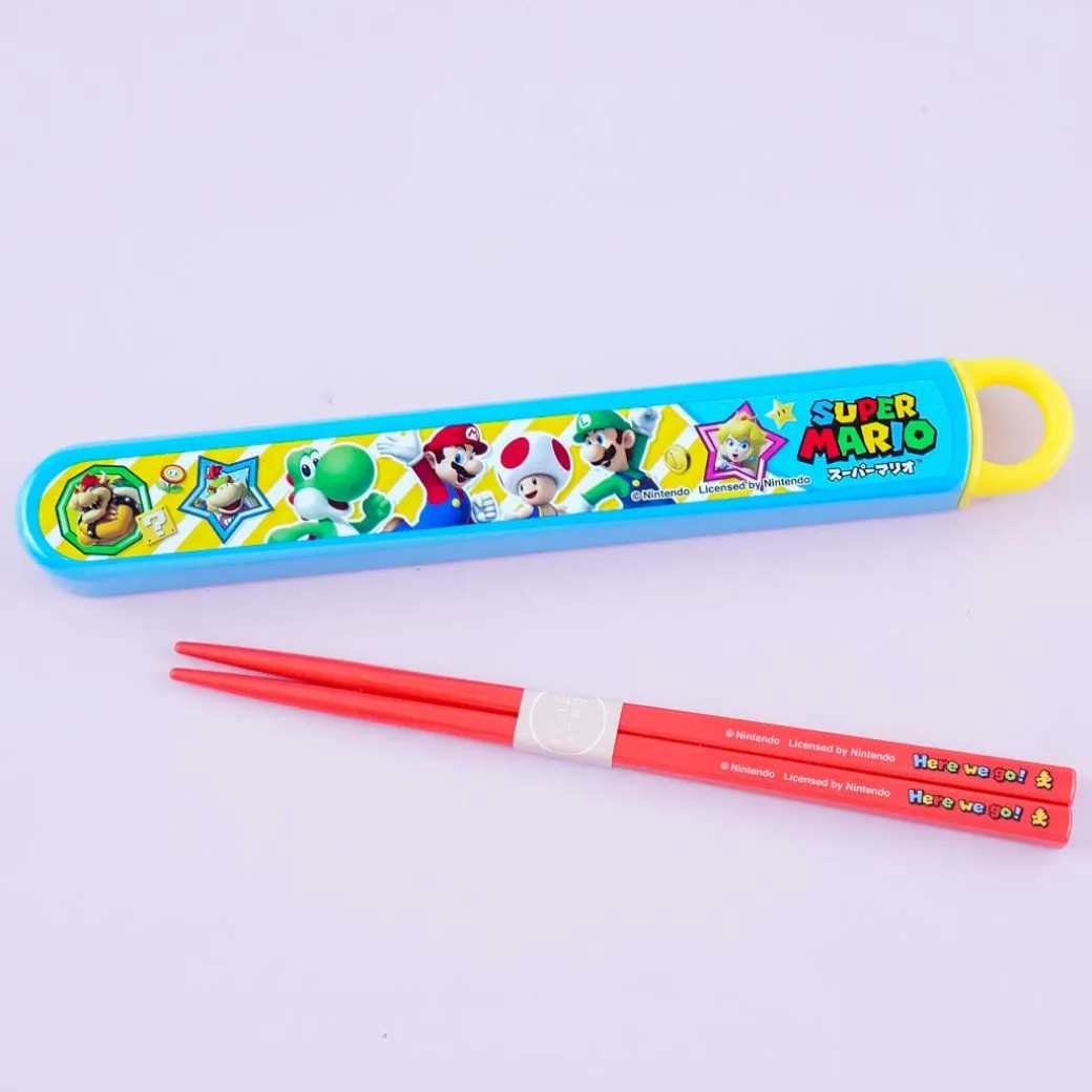 - A reusable chopsticks set with illustrations of characters from Super Mario