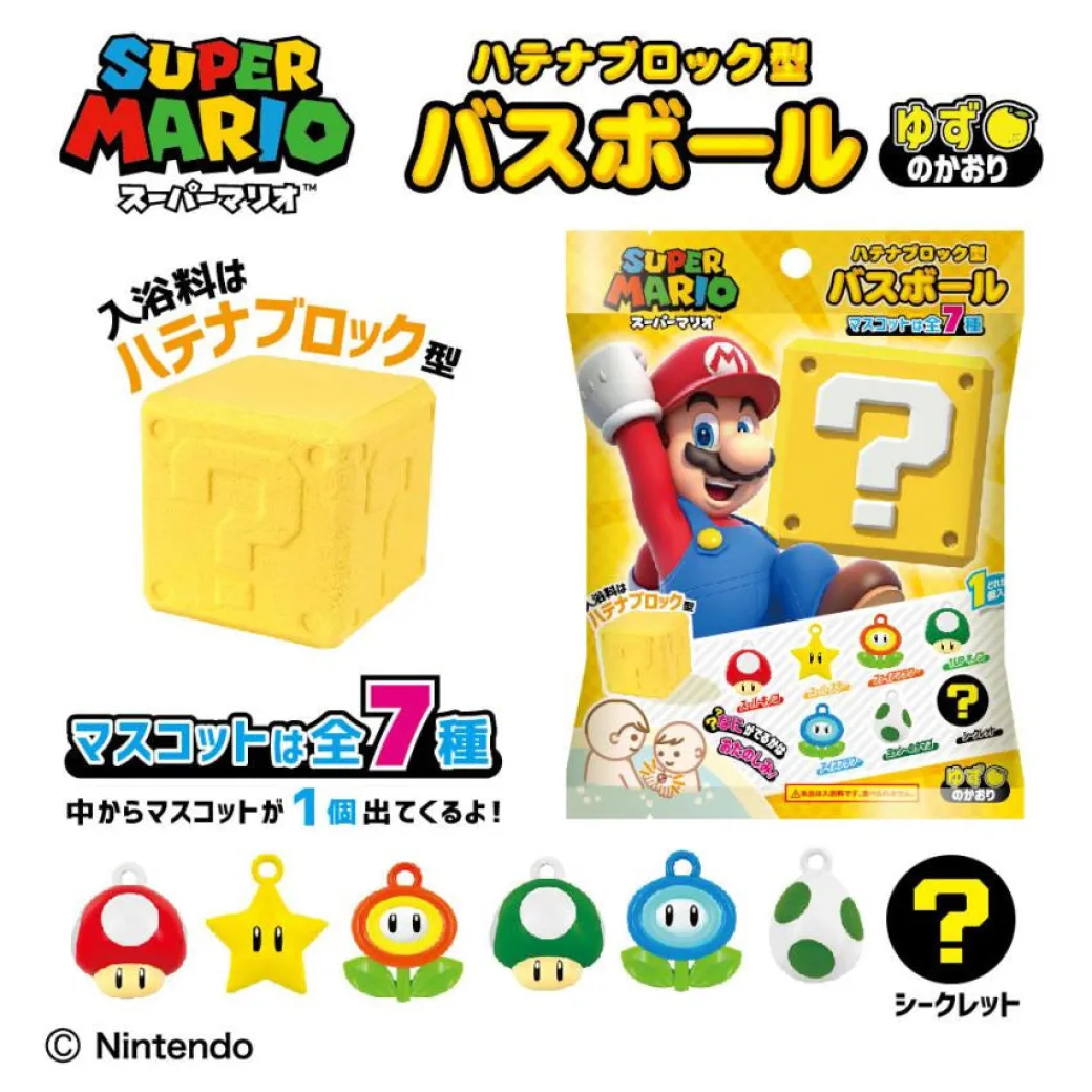 Drop this bath bomb into the tub and watch it fizz away like magic! It’s shaped like Super Mario’s iconic Question Block and contains a surprise charm inside. With a refreshing yuzu scent, bath time just got a whole lot more fun!