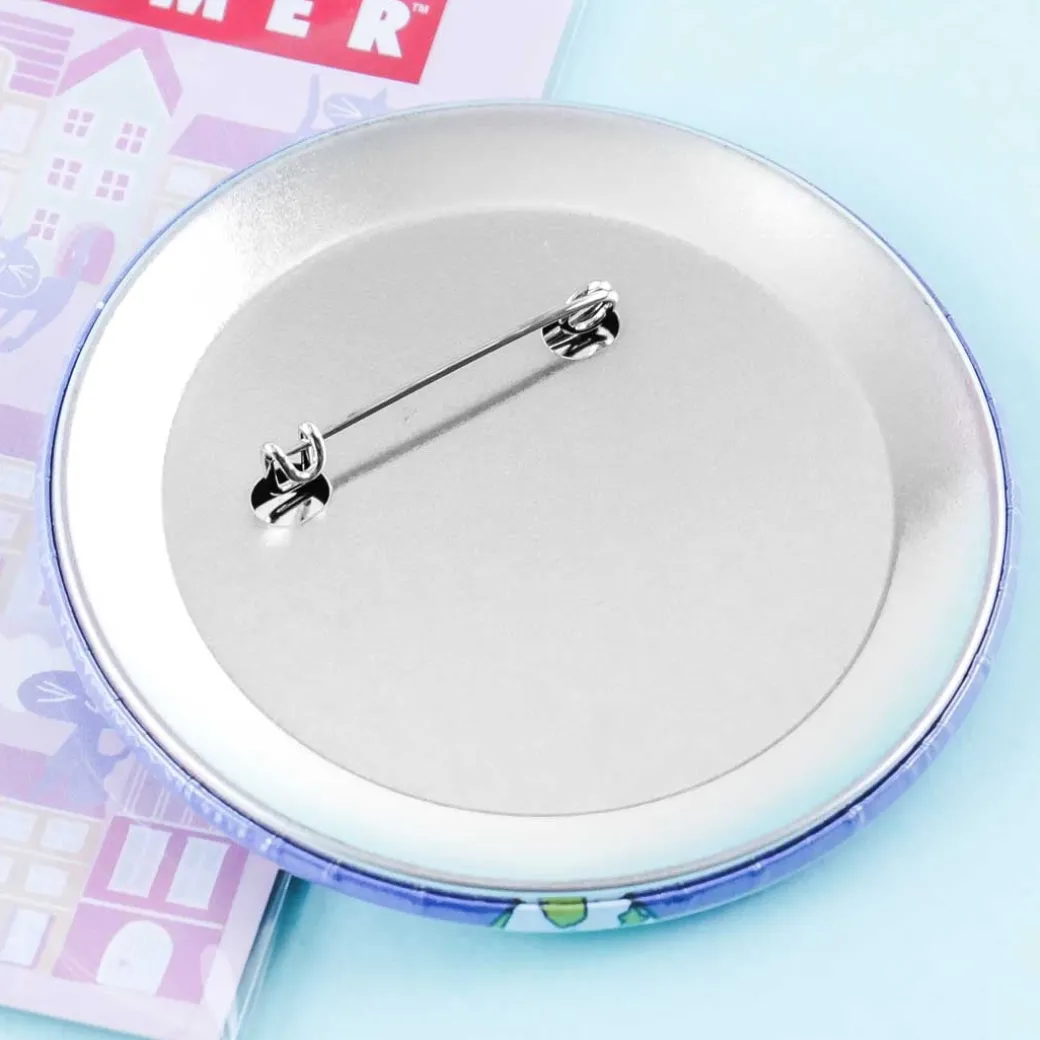 - A super kawaii badge featuring a little boy, a bear, and a robot floating in space