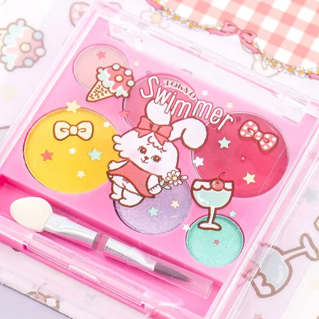 - A super kawaii lip gloss and eyeshadow palette in a case with a bunny print