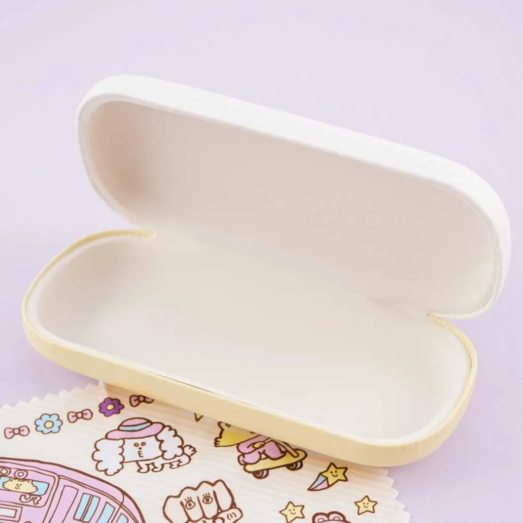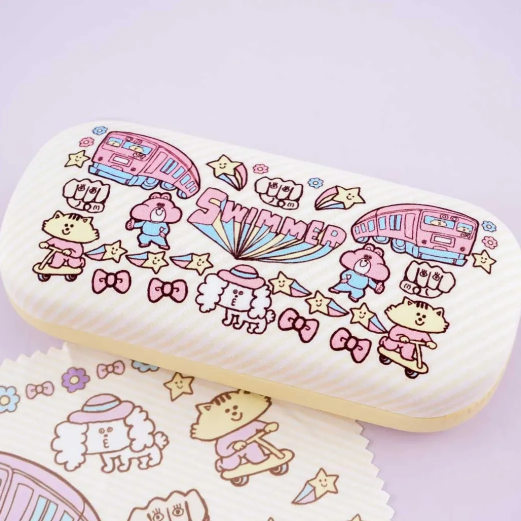 - A super cute eyeglass hard case decorated with kawaii animal friends, trains, and stars