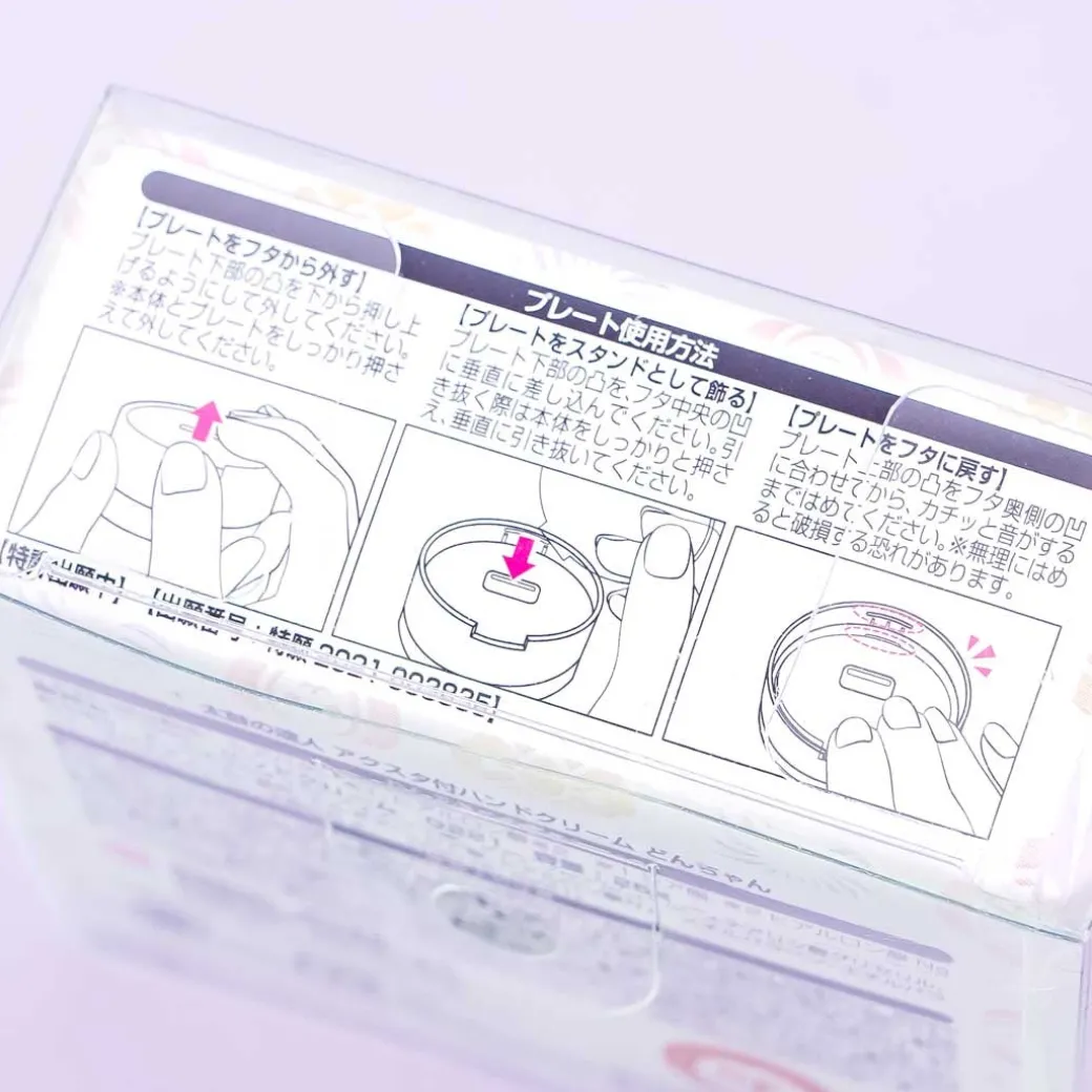 - A moisturizing hand cream in a round compact case featuring Katsu Wada from Taiko no Tatsujin