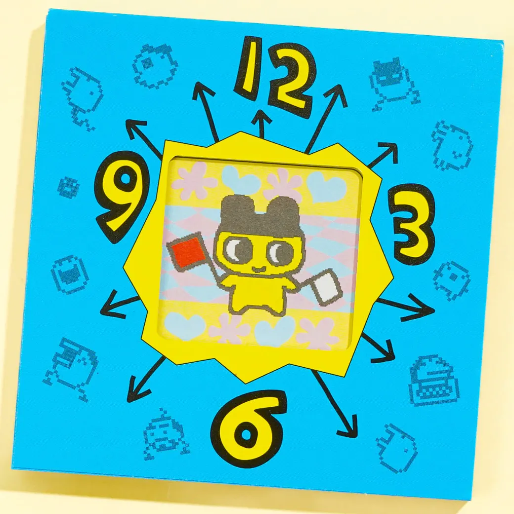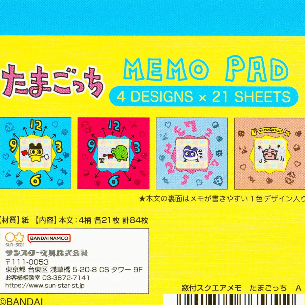 Use this kawaii mini memo pad to write important notes and reminders! It showcases four different illustrations of Tamagotchi characters with a funny clock.