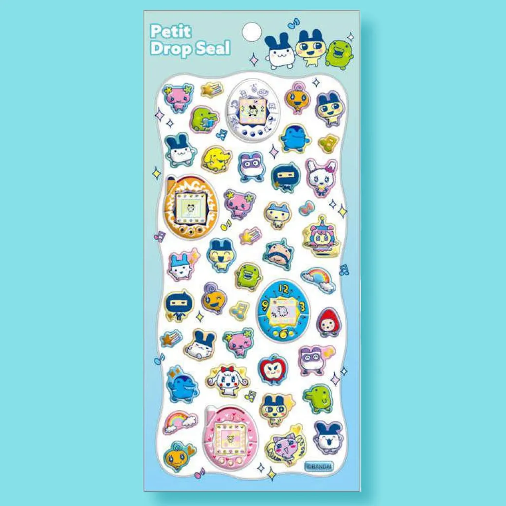 Have fun personalizing your belongings with this playful and nostalgic sticker sheet! It features die-cut prints of the iconic Tamagotchi game in a clear, puffy design with gold foil accents.