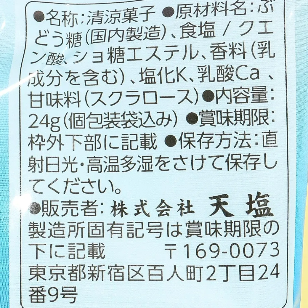 Replenish the salt and minerals that you lose during the day with this pack of individually wrapped tablet candy! Each piece is made with Ako Teshio which brings back the ion balance of the body. These candies taste like ramune, a refreshing Japanese carbonated soft drink.