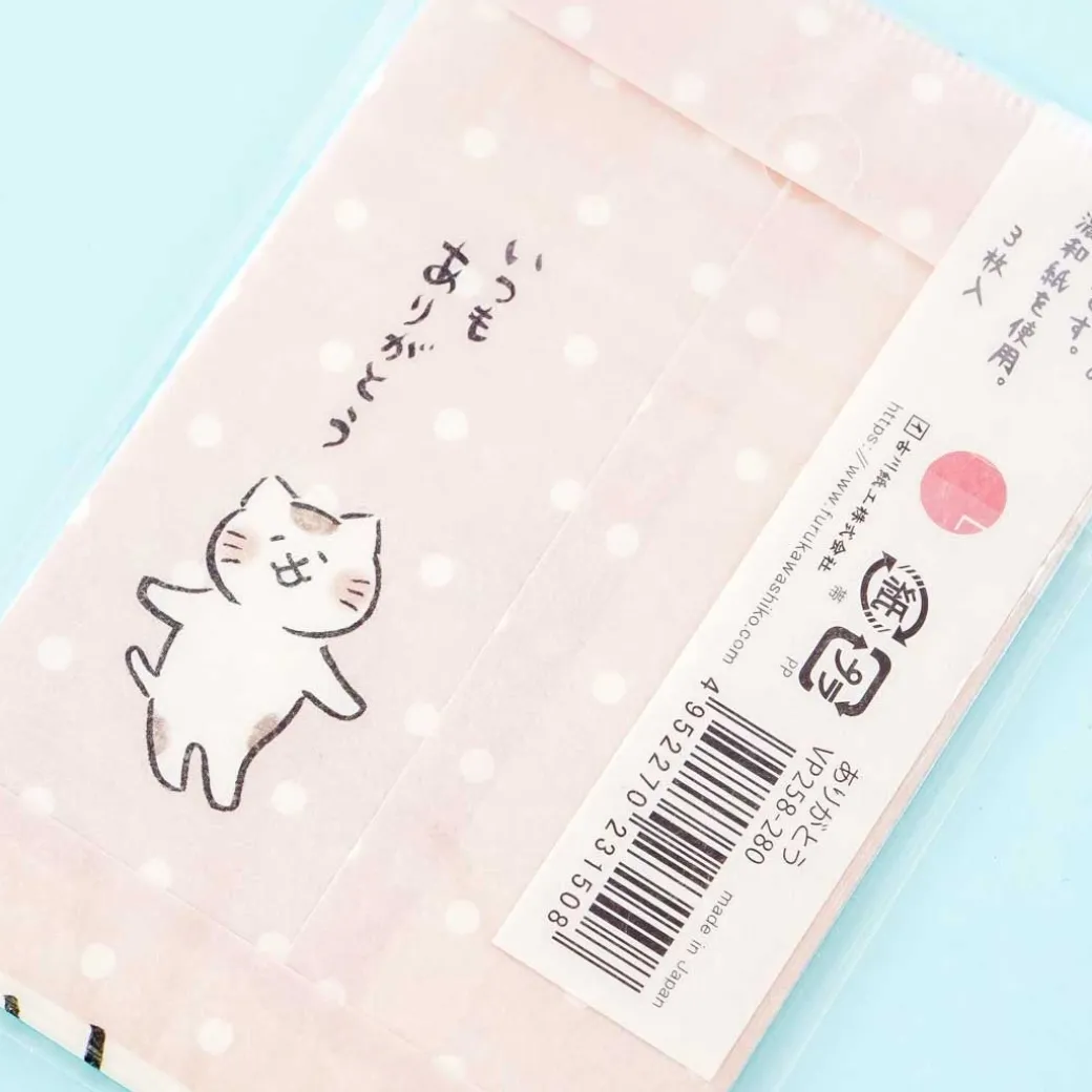 - A cute set of small envelopes illustrated with a cat and the text “thank you” written in hiragana