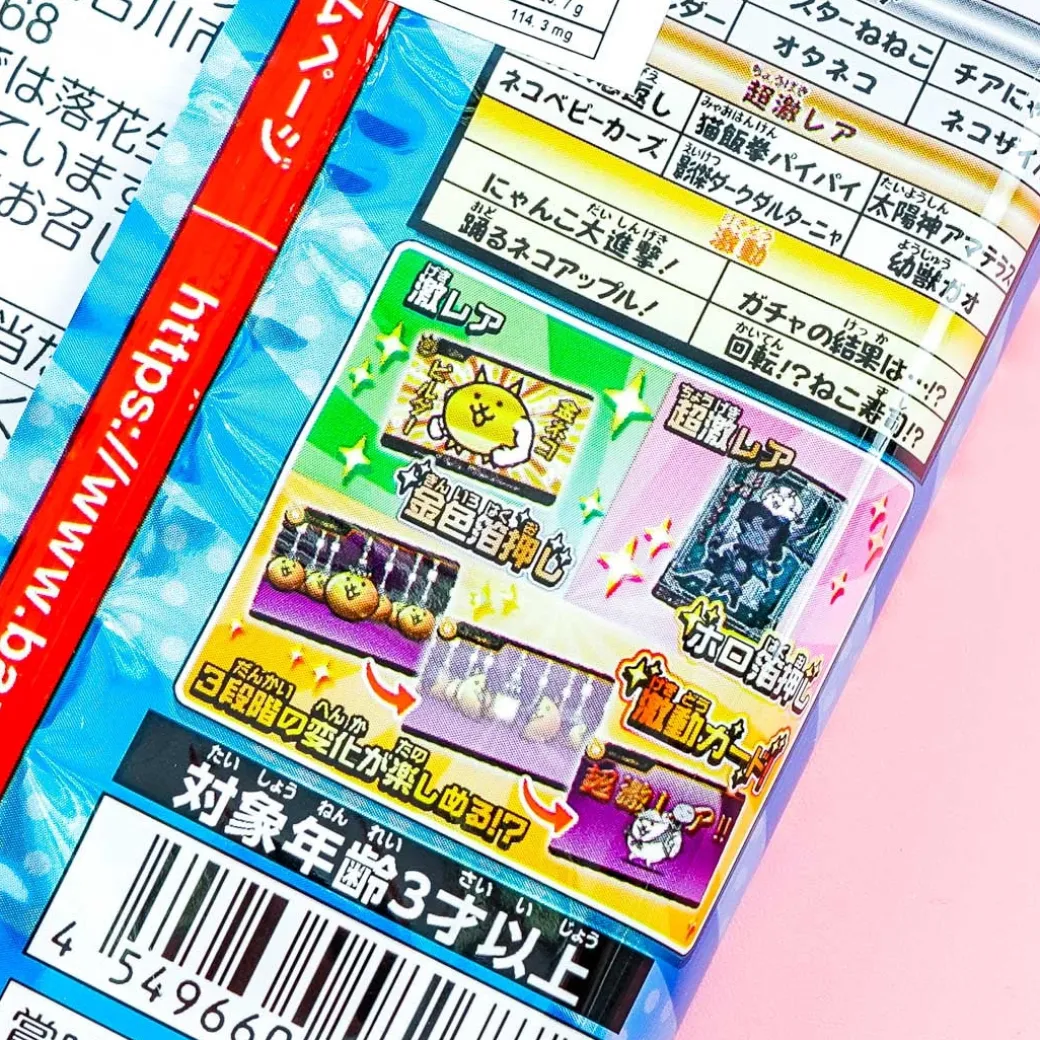 Have fun munching on this delicious vanilla-flavored wafer! Each pack features an illustration of characters from the mobile game “The Battle Cats” or “Nyanko Great War” in Japanese. It also includes a free character card from the series. You’ll receive a random card design when you order!