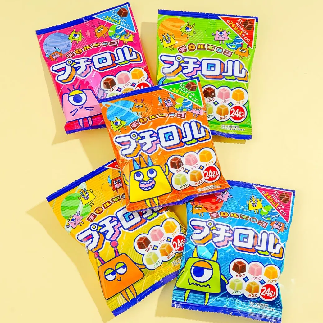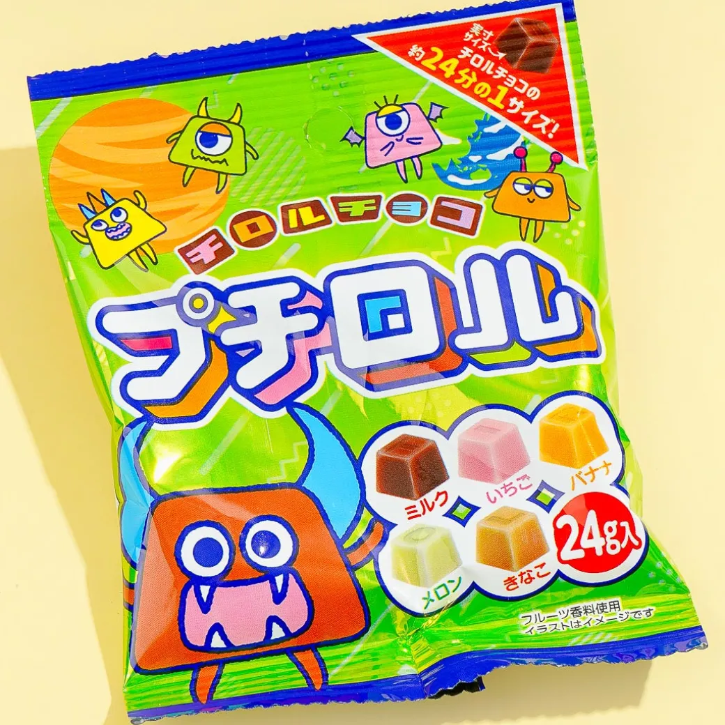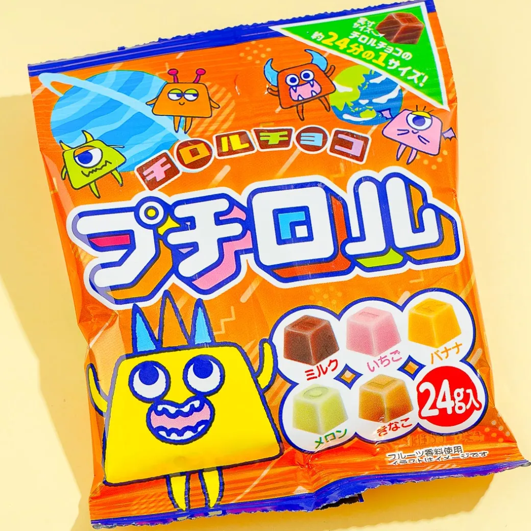 This pack of bite-sized chocolates features cute new monster characters from “Special Mission Petit Rolls.” Add this pack of goodies to your snack bin! Each chocolate is 1/24th the size of a regular Tirol chocolate.
