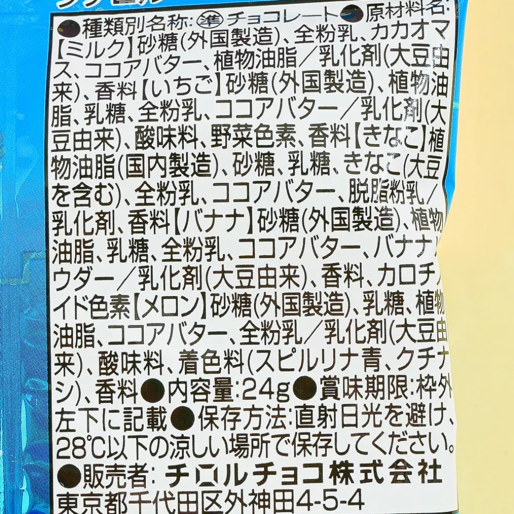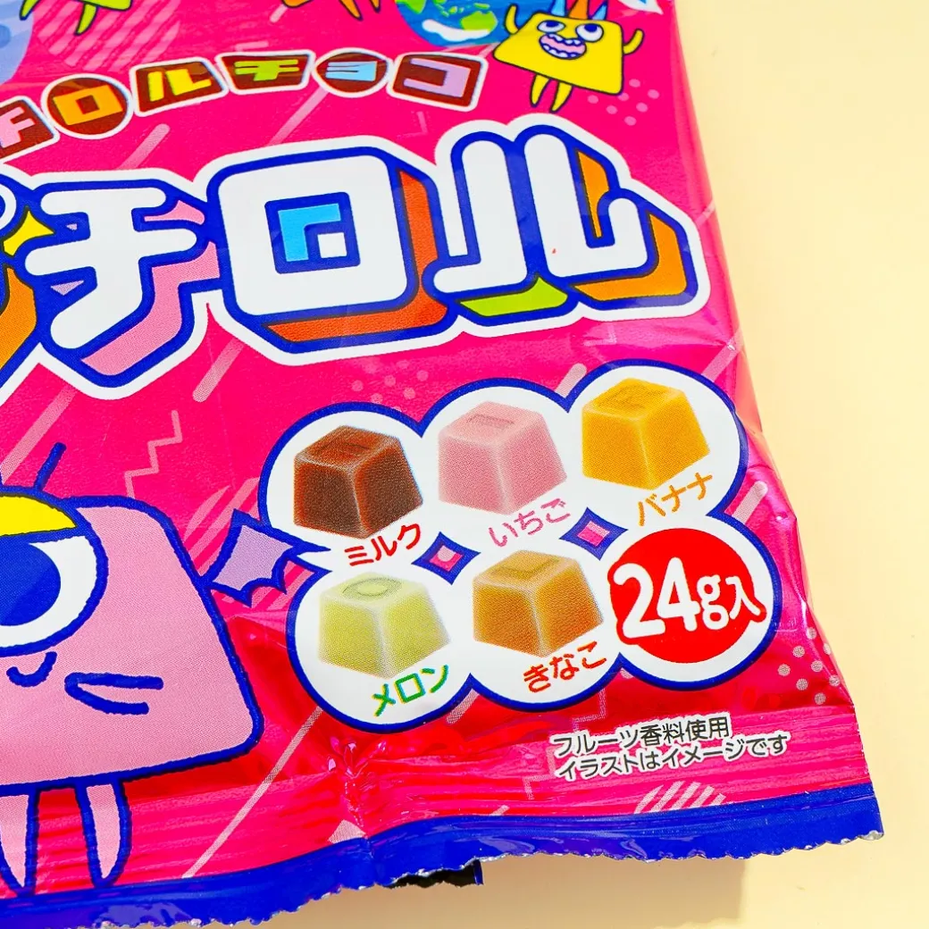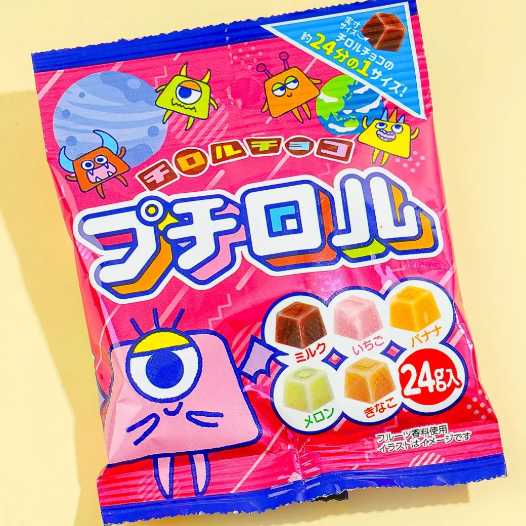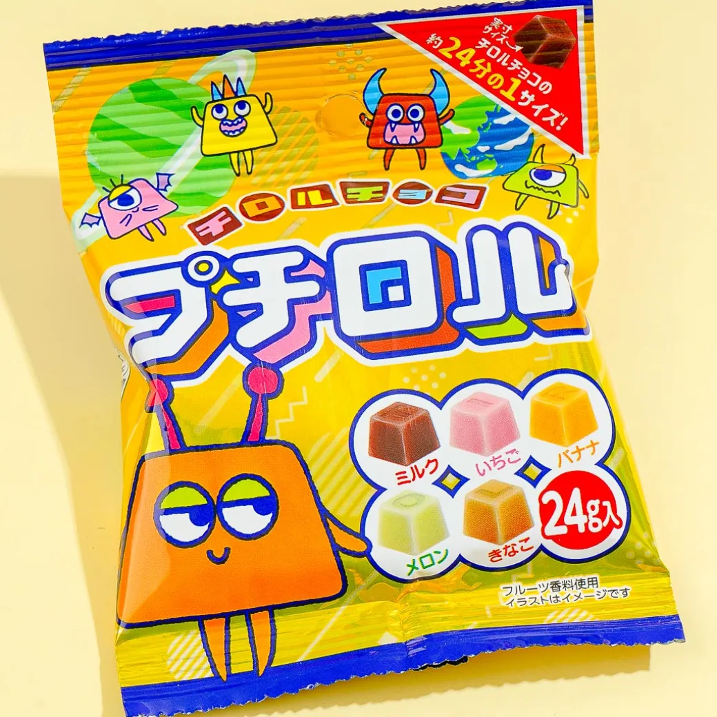 This pack of bite-sized chocolates features cute new monster characters from “Special Mission Petit Rolls.” Add this pack of goodies to your snack bin! Each chocolate is 1/24th the size of a regular Tirol chocolate.