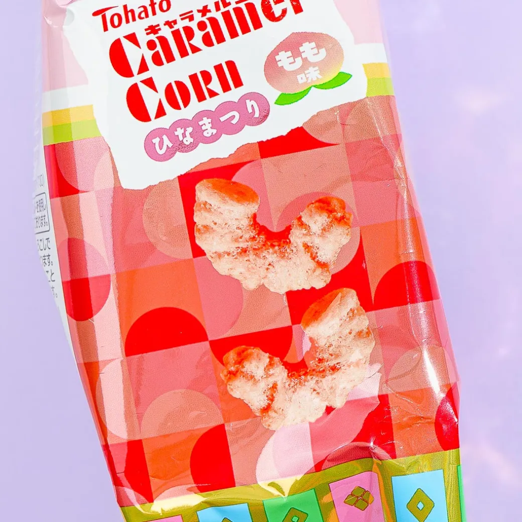 Enjoy celebrating Hinamatsuri or Doll’s Festival with this limited edition pack of caramel corn snacks! Each pink-colored crunchy piece tastes like sweet peaches.