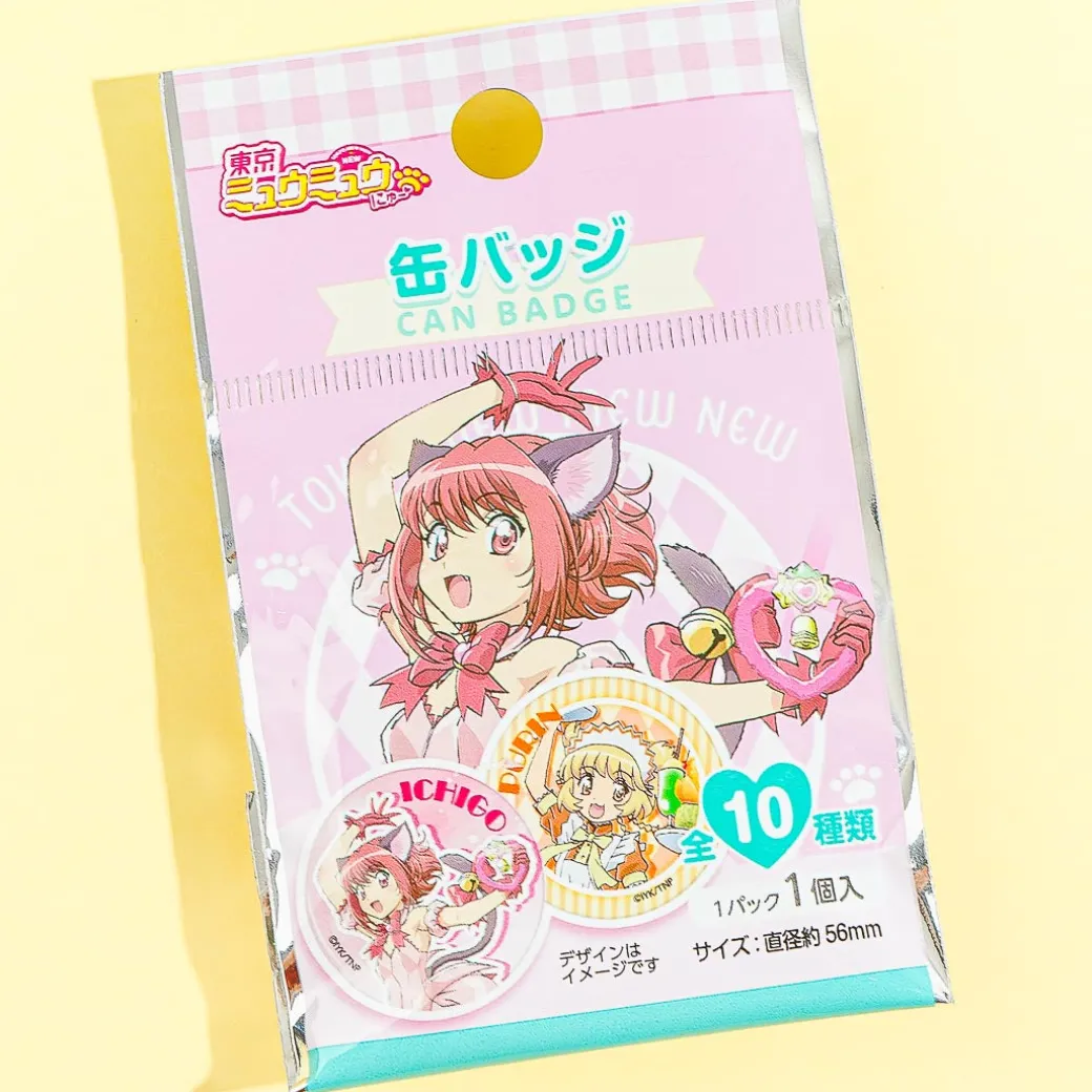 Add a touch of kawaii to your backpack when you attach this super cute badge! It features illustrations of the characters from the anime Tokyo Mew Mew New. This badge comes in a blind bag so you’ll get a surprise design!