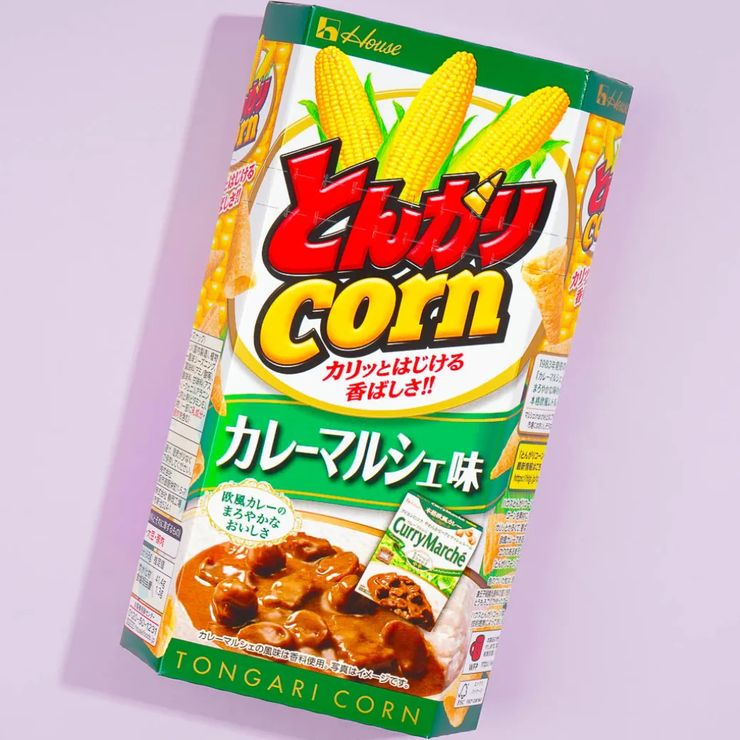 Enjoy munching on the rich flavor of European-style curry Curry Marche! These crunchy, cone-shaped corn snacks are best paired with your favorite cold drink.