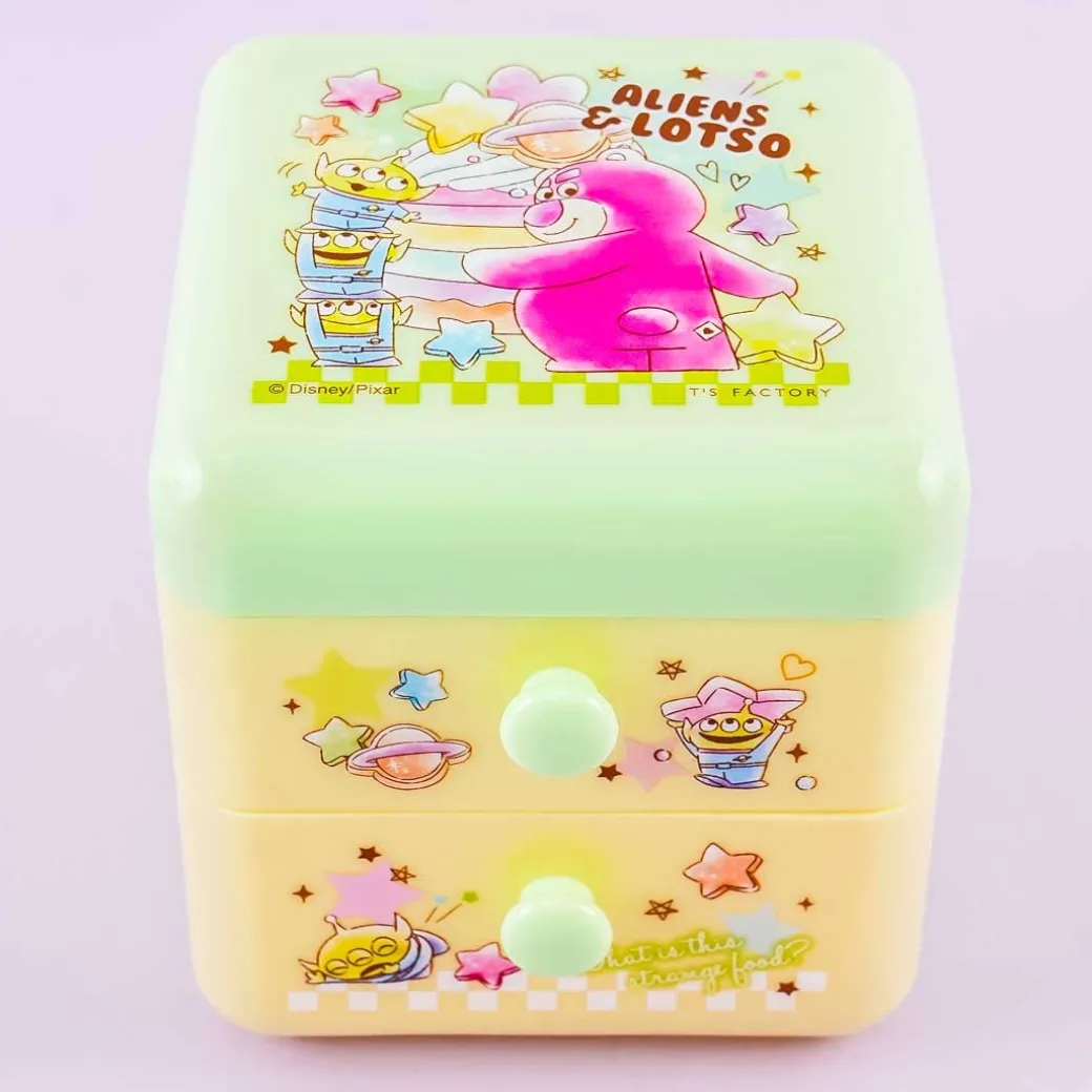 - A kawaii storage box featuring prints of the Aliens and Lotso from the Toy Story movies