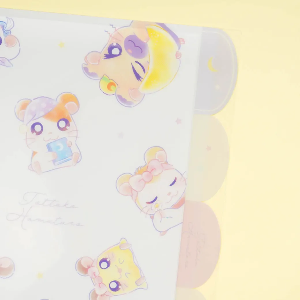 Keep your important files safe and sorted using this super cute Trotting Hamtaro file folder! It has 5 pockets with side tabs that can fit files up to A4 size. The front and back cover feature illustrations of Ham-chans getting ready for bed!