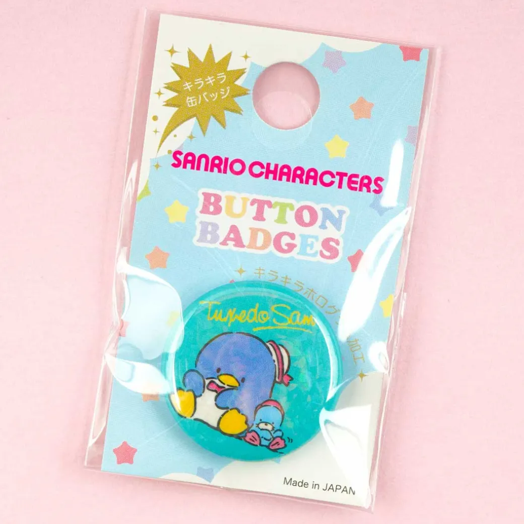This kawaii badge showcases a print of Tuxedosam hanging out with this friend! It has glittery holographic details. Use it to decorate your bag or denim jacket!