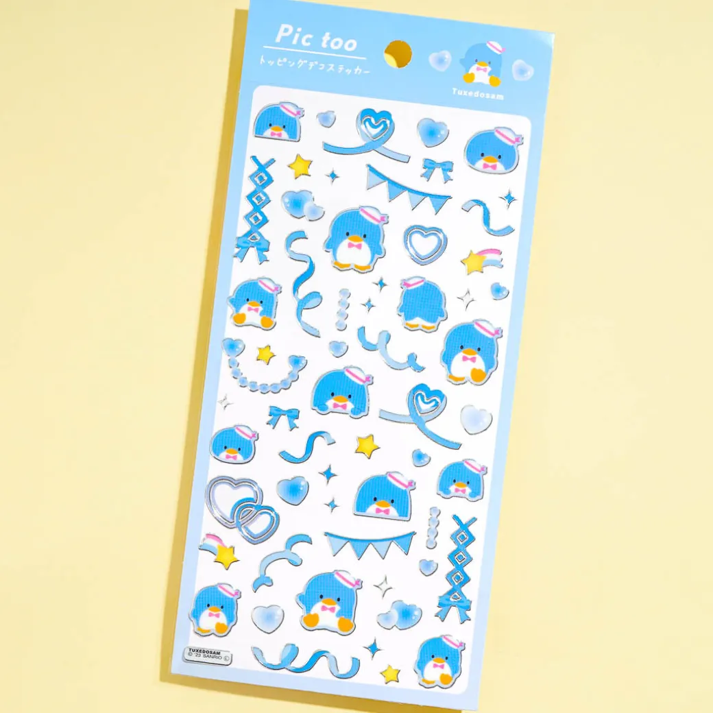 This cute sheet of stickers showcases Tuxedosam with party decors! Use these stickers to decorate your diary. Each sticker has cute silver accents.