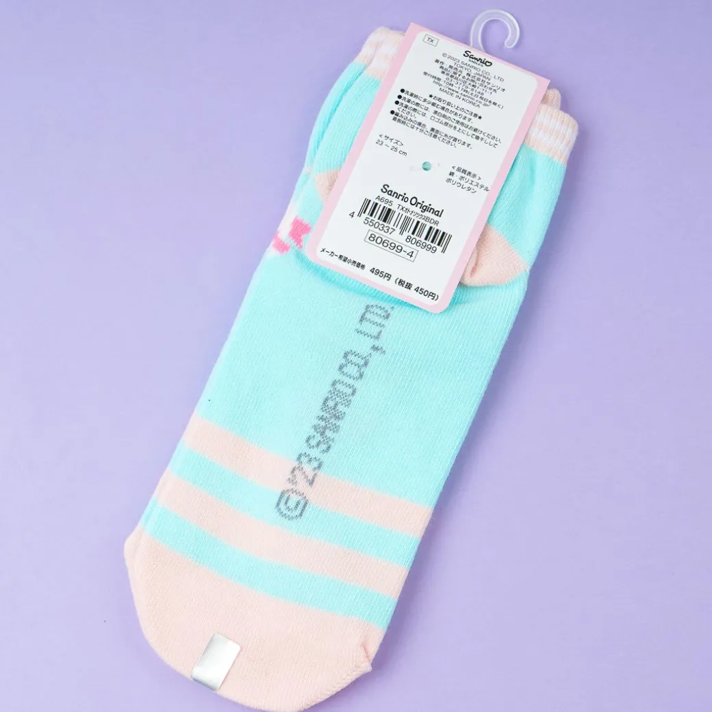 Complete your kawaii outfit by wearing this pair of ankle socks with pink and sky-blue stripes! These are also decorated with kawaii prints of Tuxedosam doing a peekaboo. The super cute pair is breathable, as well as sweat-absorbent.