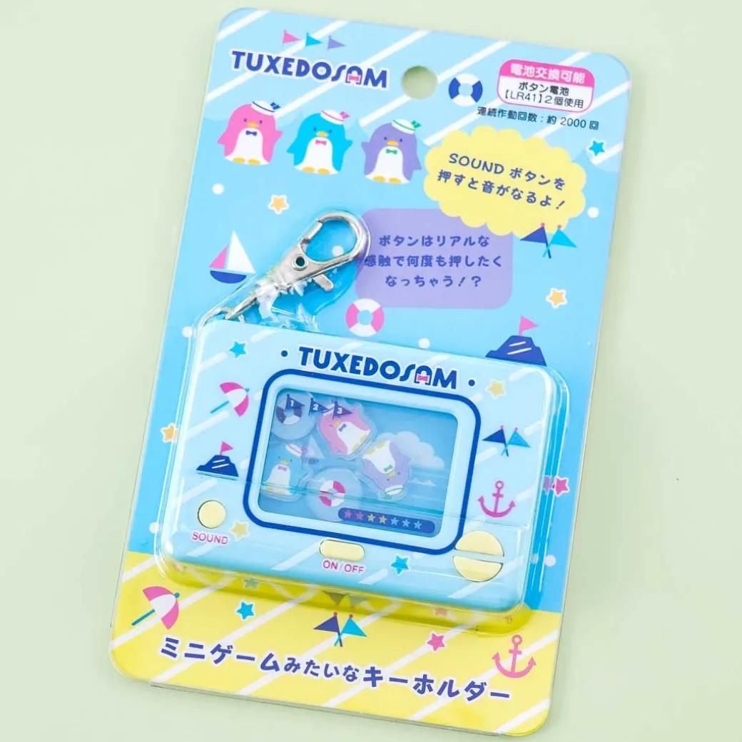 - A cute mini handheld Tuxedosam gaming console that doubles as a bag charm