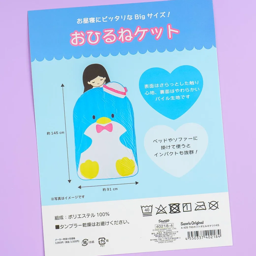 This kawaii blanket is perfect for napping! It features a die-cut illustration of Tuxedosam and is made from breathable fabric.