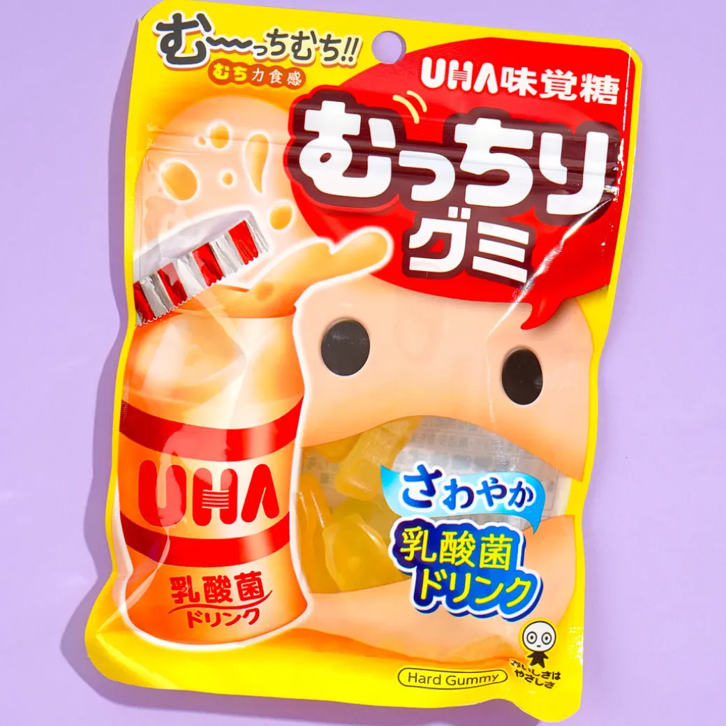These bottle-shaped gummies have a unique chewy texture and the refreshing sweet flavor of lactic acid drink. You might even see a surprise Mucchiri-shaped gummy! Munch on these gummies during your work or study break.