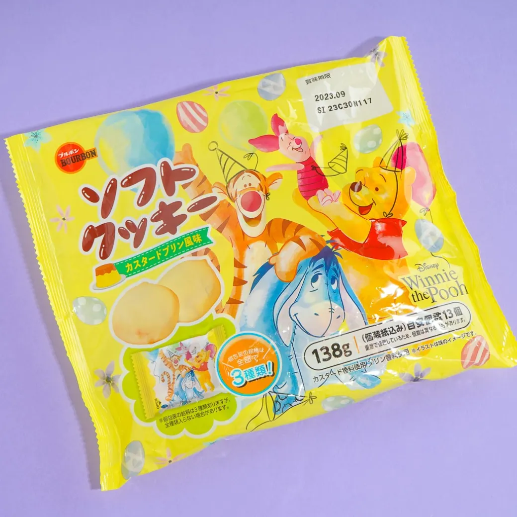 Pair these yummy moist cookies with your favorite tea! Each piece is flavored with sweet custard pudding! The pack features prints of Winnie The Pooh and his friends Piglet, Eeyore, and Tigger.