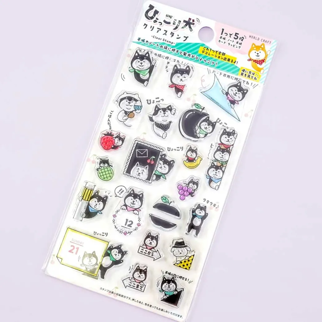 - A cute set of transparent stamps featuring playful Shiba dogs